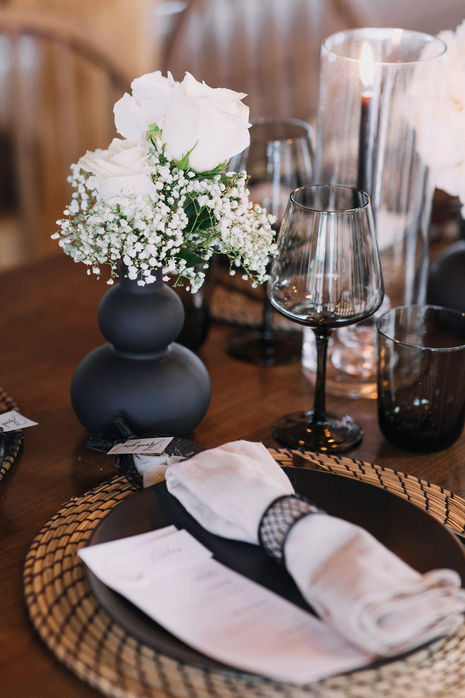 A stylish beach wedding with black and white details at Almyra Beach Bar and Restaurant. The colour pallet couldn't be something else rather than black and white as Mr & Mrs Schwarz means Mr & Mrs Black. Fine stationery and minimal aesthetics made a clean dynamic decoration look while the wedding cake and bridal bouquet embraced the all white timeless flair. Wedding styling should reflect your personality and this is something we always advise to our couples.